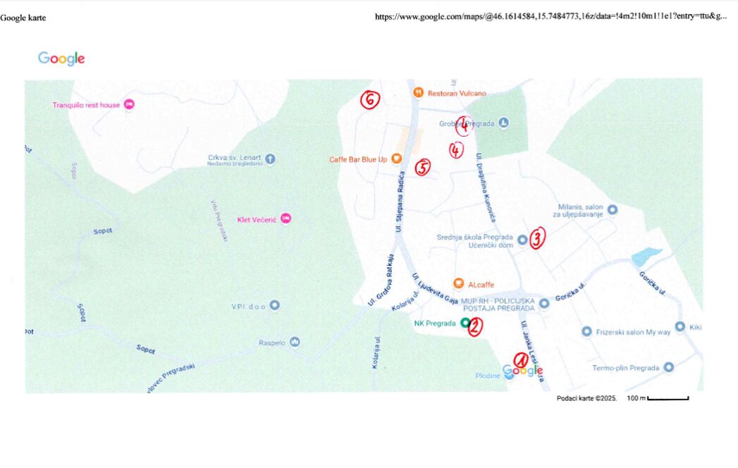 Za parkirna mjesta pod brojevima 3, 4, 5 i 6 morate proći Ulicom Dragutina Kunovića jer će  pravac Državne ceste kroz Pregradu biti zatvoren.
